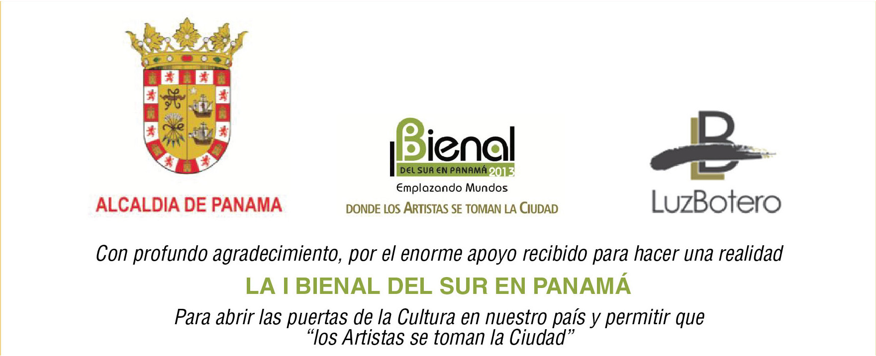 Primera Bienal del Sur en Panamá "Emplazando mundos" FUENTES: www.laestrella.com.pa En el marco de la celebración del V Centenario del Descubrimiento del Mar del Sur, la Alcaldía de Panamá presenta un evento proyectado al arte y la cultura a nivel internacional para transformar la ciudad y su entorno, promoviendo la participación del público en permanente diálogo e interacción con el mundo del arte. |
